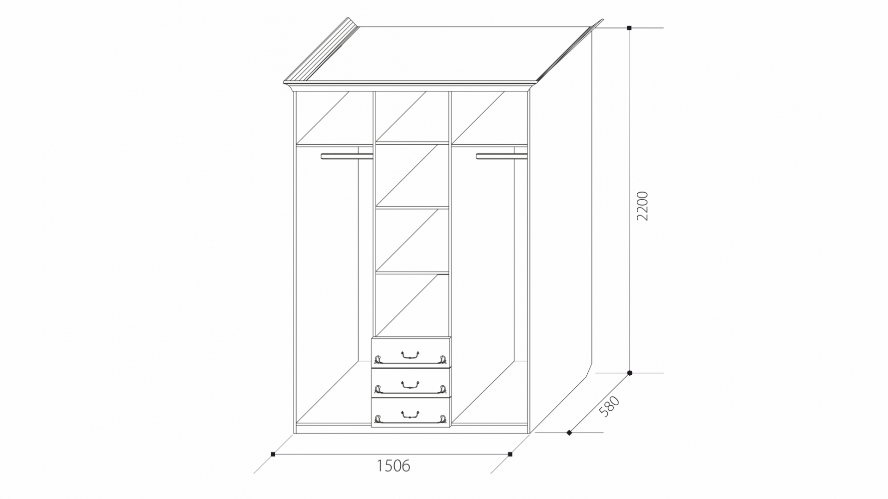 ШКАФ 3х дверн. с выдвижными ящиками без зеркала Ивушка-5